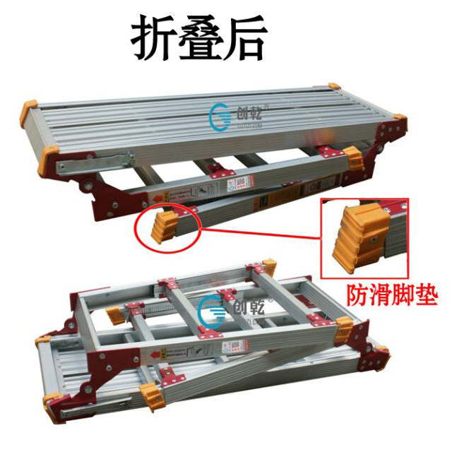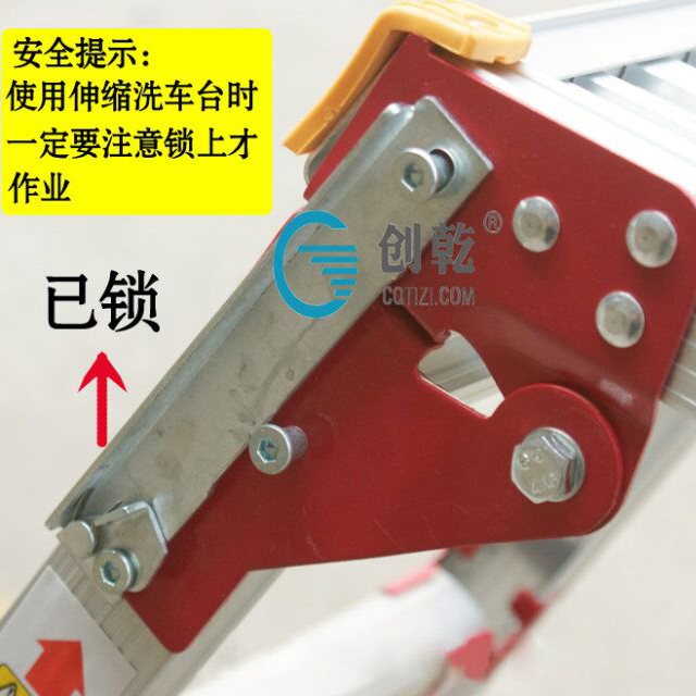 产品简介:创乾正品移动伸缩折叠洗车工作台 清洗台梯铝合金加厚凳平台梯子