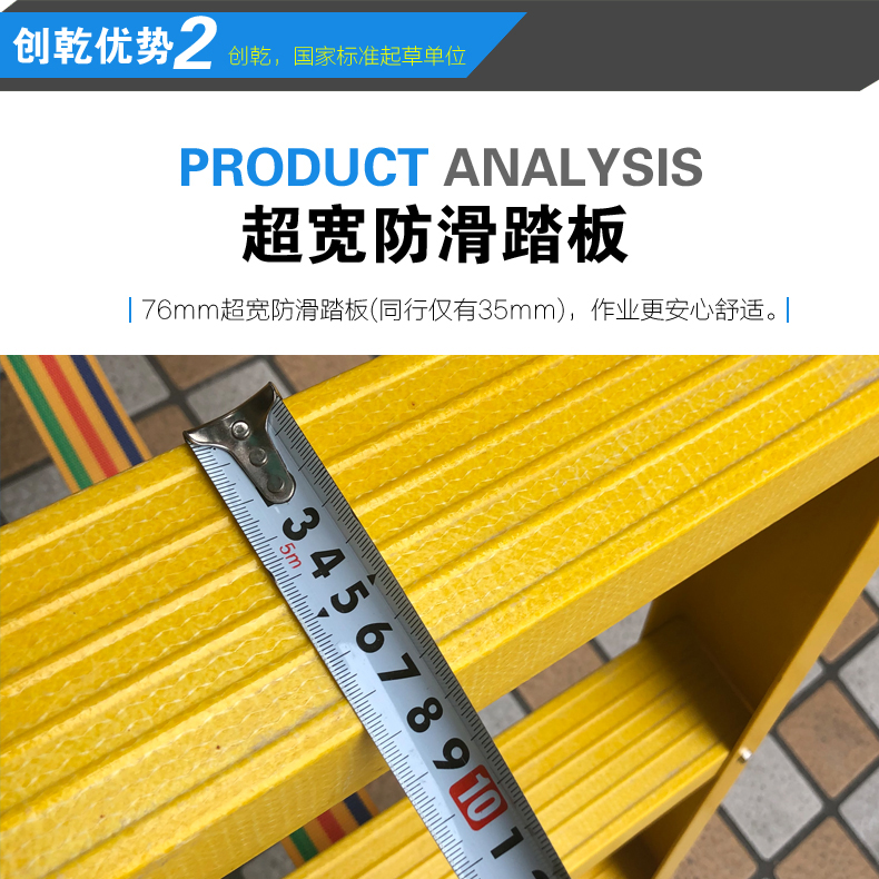 产品简介:绝缘梯具有弹性好,长久使用不易疲劳,安全程度高,梯身色彩鲜不褪色,耐腐蚀,低吸水,重量轻于同级环氧树脂梯子等优点。并配有防滑带,防滑梯脚。防滑梯脚采用橡