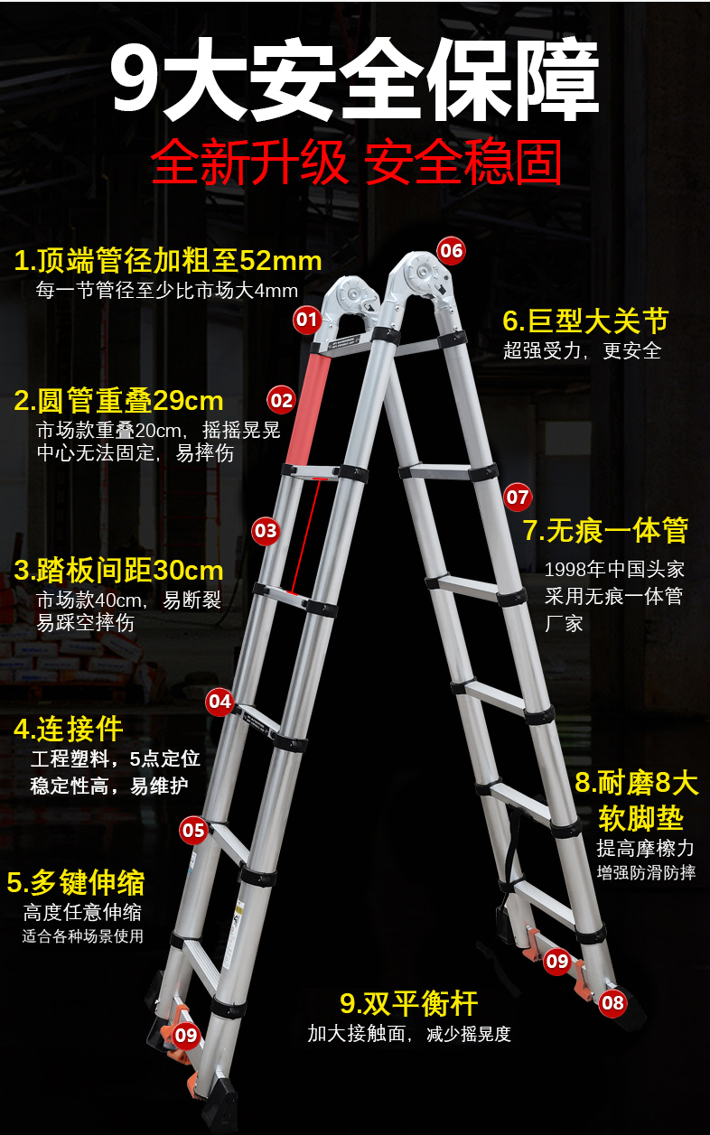 2、如遇到梯子材料变弯,折断或连接件不能正常工作,务必与制造商联系,进行专业的维修。
