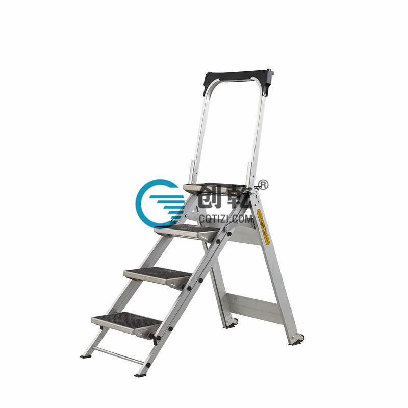 CQVF-2扶手踏台采用航空铝材加工制造而成。 2.踏板踩踏面积24*36(cm)有防滑纹,踩踏舒适。 3.外观时尚,属于高端家用梯。 4.梯脚后根有轮子,可用扶手拖着走。