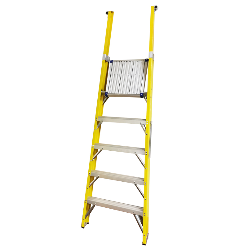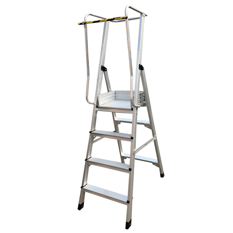 产品简介:采用高反光铝圆管栏杆,多重保护,更安全,全铝特厚踢脚板,防止脚踩空,加长圆扶手,轻松上下安全梯,高静音橡胶轮,轻松搬动梯子。