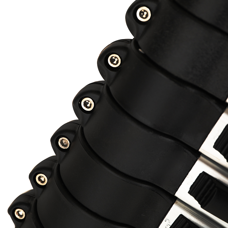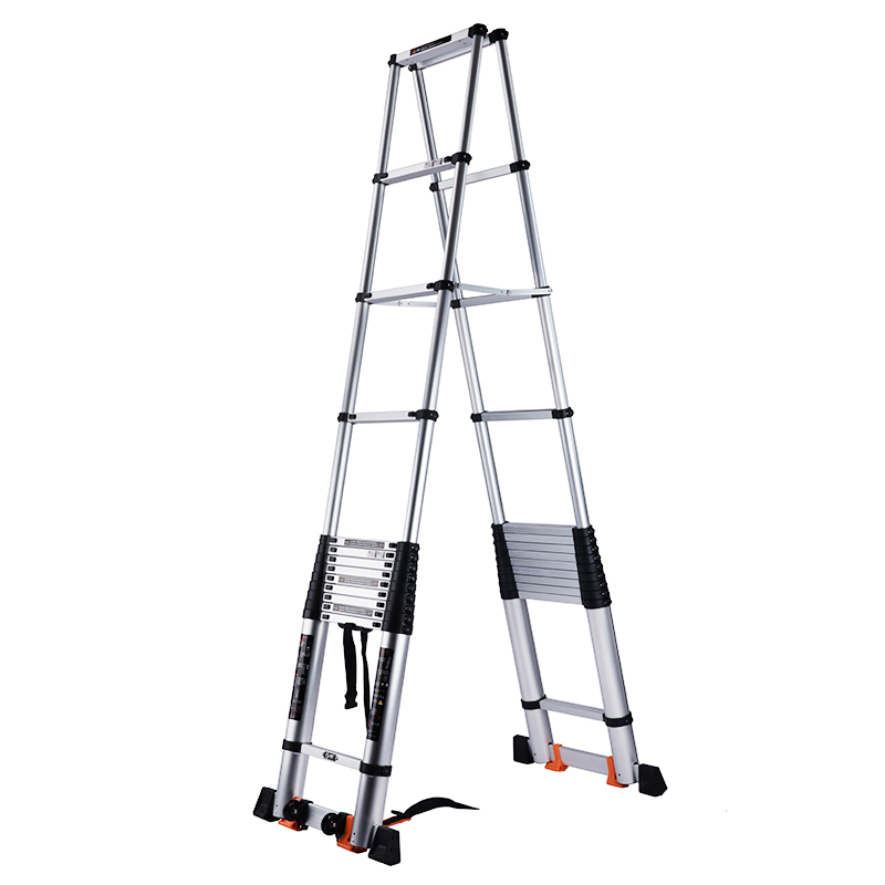 所属分类:竹节伸缩梯子. 产品简介:1、梯子的每一节的圆管比别人的长9CM,重叠的越多,摇晃度越低。 2、材质本身,用的材质比别人不一样,用的都是进口料铝合金.