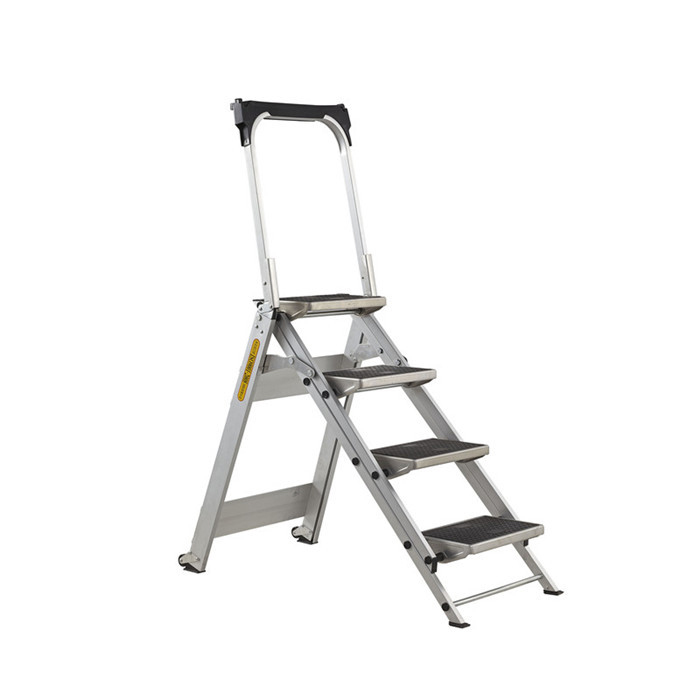 产品简介:创乾家用美式踏台梯特点: 1.采用航空铝材加工制造而成。 2.踏板踩踏面积24*36(cm)有防滑纹,踩踏舒适。 3.外观时尚,属于高端家用梯。 4.梯脚后根有轮子,可用扶手拖着