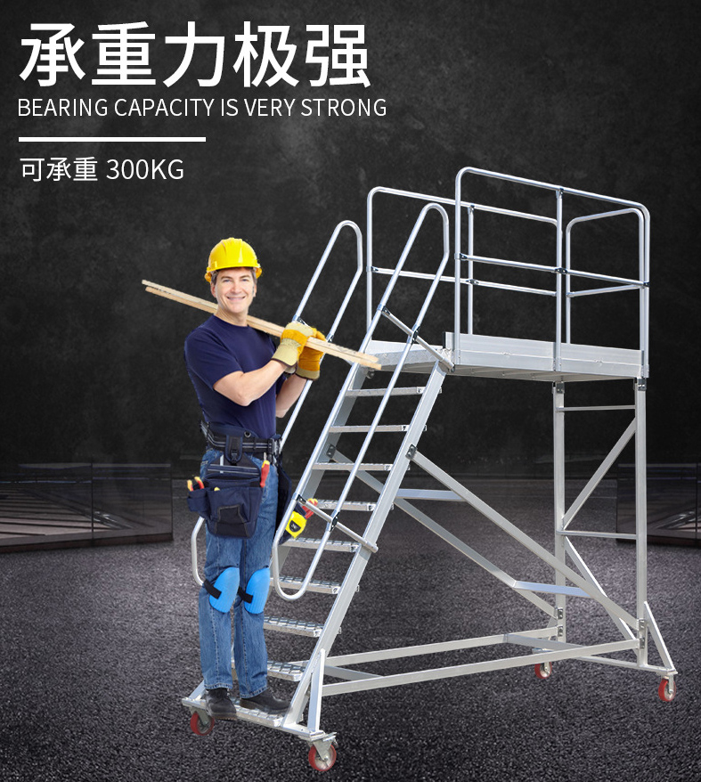 用途:登高梯/工程梯/维修梯/仓储用梯/单侧扶梯。材质:铝合金,绝缘性:非绝缘,承重:300kg。【非标定制】