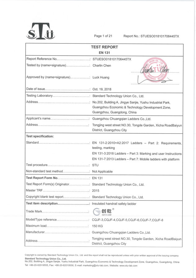 创乾伸缩梯检测报告