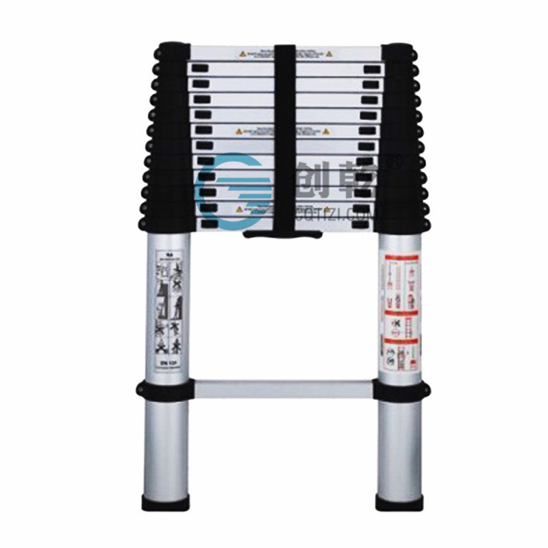 CQH-3.2M铝合金伸缩梯每一节的圆管比别人的厂9CM,重叠的越多,摇晃度越低。 2、材质本身,我们用的材质比别人不一样,我们用的都是进口料,铝合金强度比别人高很多。 3、我们的表面处理跟别人不一样,我们是用氧极化处理,比别人更好看。
